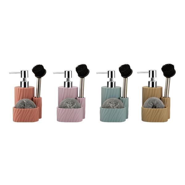 3N1 sand stone utility soap dispenser with swirl stripe and S/S nylon brush and cleaing ball soap pump liquid hand soap dispenser Images |